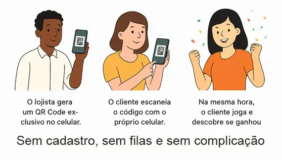 Todo Mundo Tem a Chance de Ganhar: Diferente de sorteios onde apenas um sortudo vence, a sua promoção cria uma sensação de inclusão. Cada cliente que compra tem a oportunidade de participar e ser recompensado, gerando uma experiência positiva que ele vai querer compartilhar.